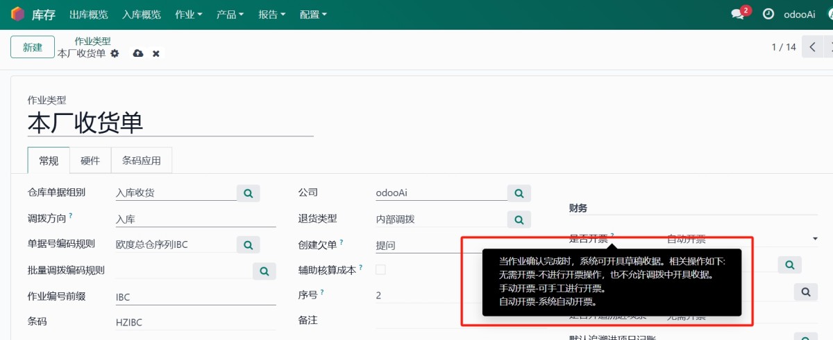 可配置自动开具,手工开具。完全兼容Odoo原生规则