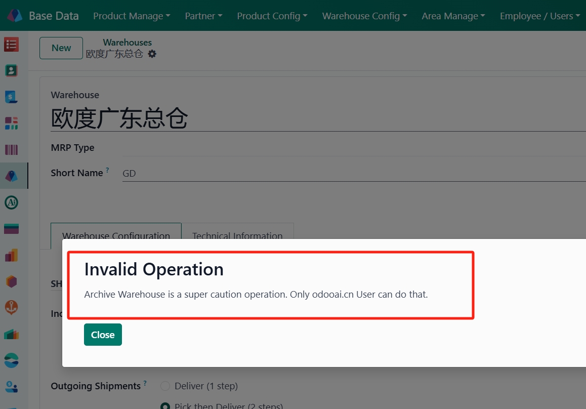 - 3. Only Super User can archive warehouse.仅超级用户可以删除或归档仓库。