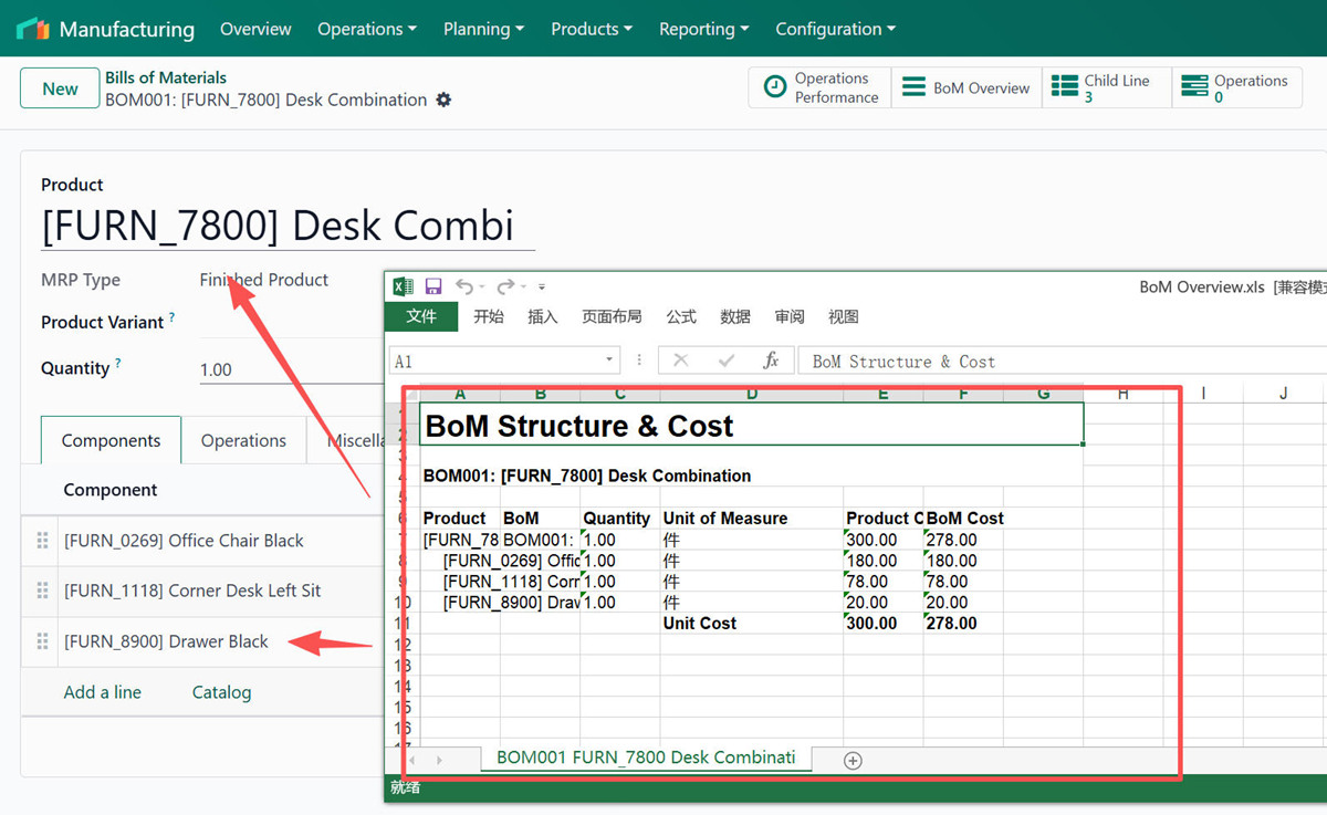 - 1. Mass export BoM Structure in multi level to excel.批量导出BoM结构及明细用料与工序