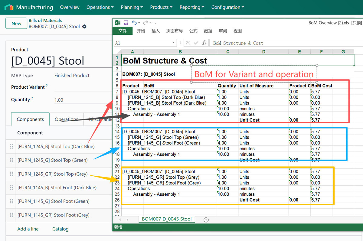 - 3. Export bom line for multi Variant with Operation.导出多变体多工序BoM