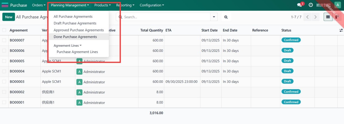 1. Full purchase plan manage. PO follow plan.