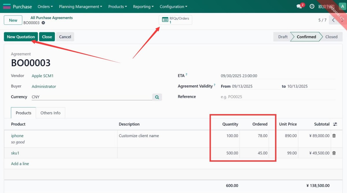 Auto Set vendor and quick create PO in Purchase Agreement.