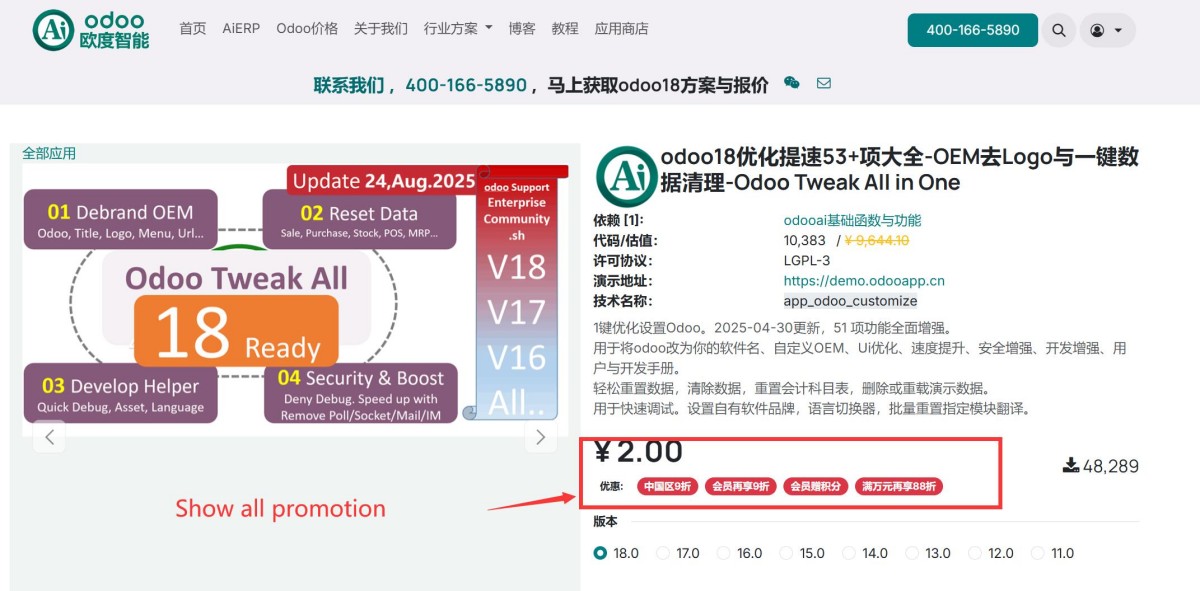 - 售后承诺: odooApp.cn 的模块与主题均保证功能与您下载时所见描述一致,如有异议可在下单后15天内申请免费退款