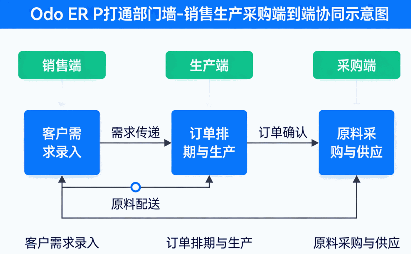 销售-生产-采购数据割裂,跨部门沟通耗时占30%。